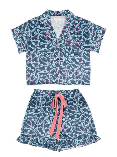 Simply Southern Short Sleeve Blue Ribbon & Bows Pajama Short Set