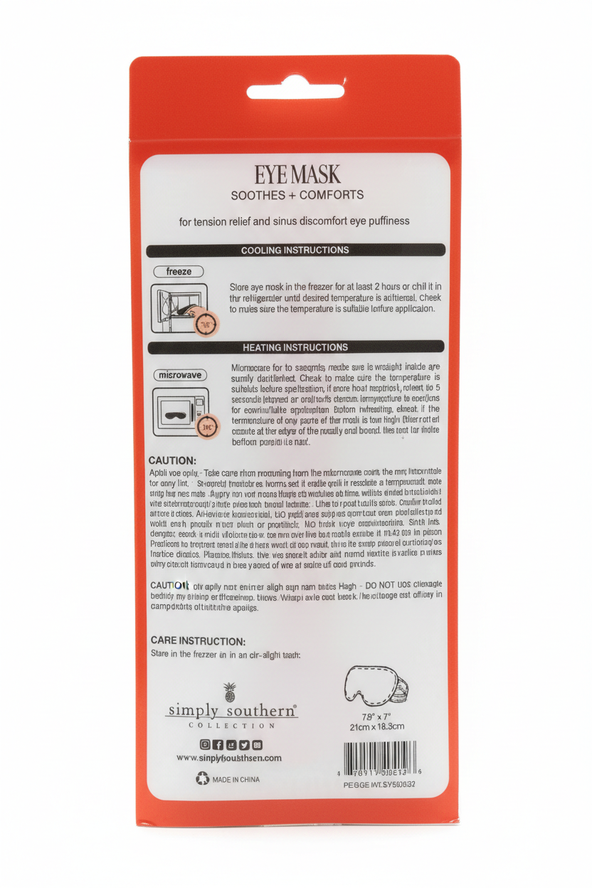 This Simply Southern Eye Mask is designed for both "soothes and comforts," providing relief for tension, sinus discomfort, and eye puffiness. The mask features a dual-purpose design that can be used for both cooling and heating therapy.