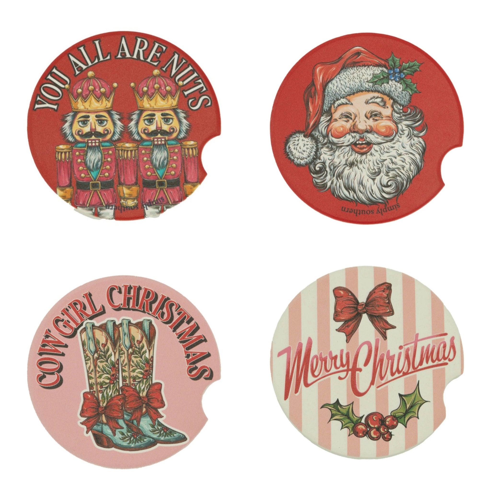 These coaster are the perfect little conversation starter to keep the laughter flowing at parties or cozy nights in. Perfect to add a touch of holiday cheer to your vehicle too!! Designed to keep your surfaces protected while adding a festive touch, it’s both practical and full of personality. A fun stocking stuffer or gift for anyone who loves a little holiday sass!