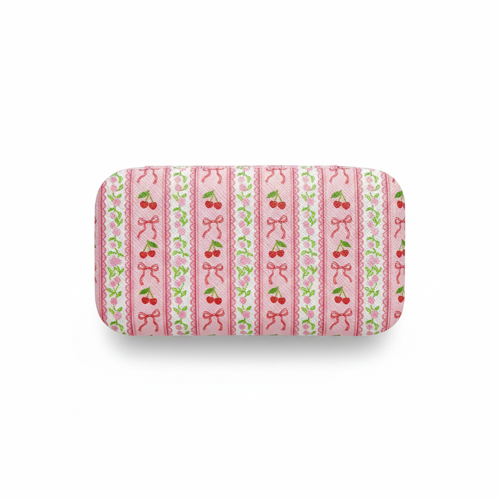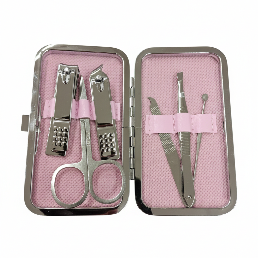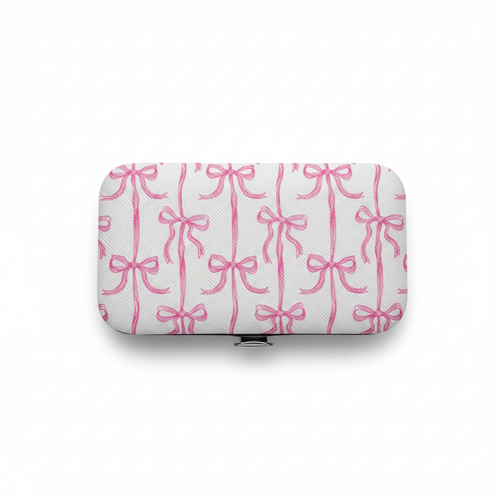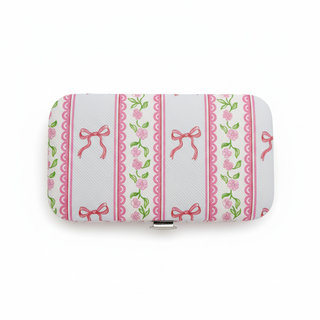 This adorable manicure kit is your go-to solution for keeping your nails looking fabulous anywhere, anytime. Compact enough to slip into your purse, stash at your desk, or keep in your car, it's ready for any nail emergency that comes your way. Inside you'll find everything you need: a metal nail file, tweezers, angled and curved nail clippers, hangnail scissors, and a cuticle pusher. At just 4.25" long and 2.5" tall, it's the perfect pocket-sized beauty essential. Available in four gorgeous design options to match your style!