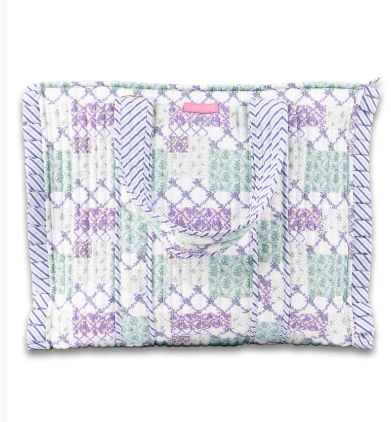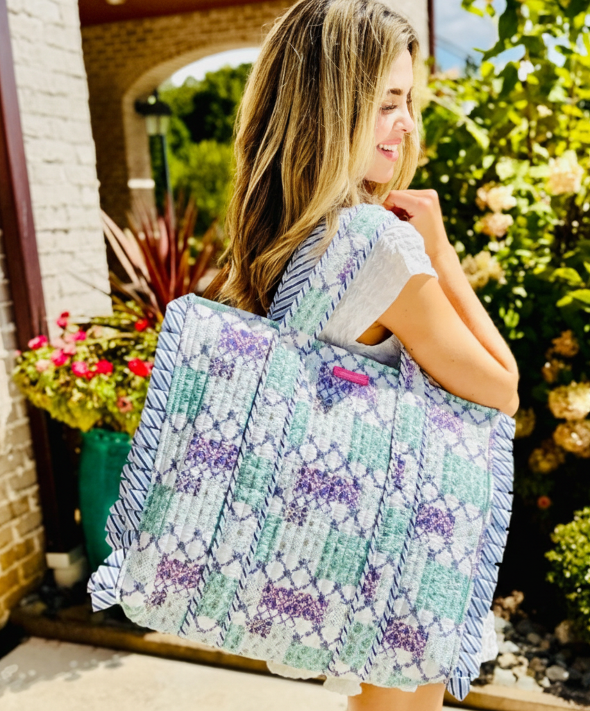 The Quilted Tote is perfect for the everyday. It features a structured construction, two top handles for easy carrying, exterior zippered pocket for easy access, zippered main compartment, and the Simply Southern gold tone logo label. Made of 100% polyester.