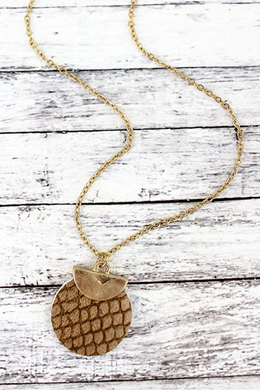 Goldtone Half Moon and Brown Python Disk Necklace