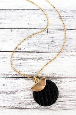 Goldtone Half Moon and Black Python Disk Necklace