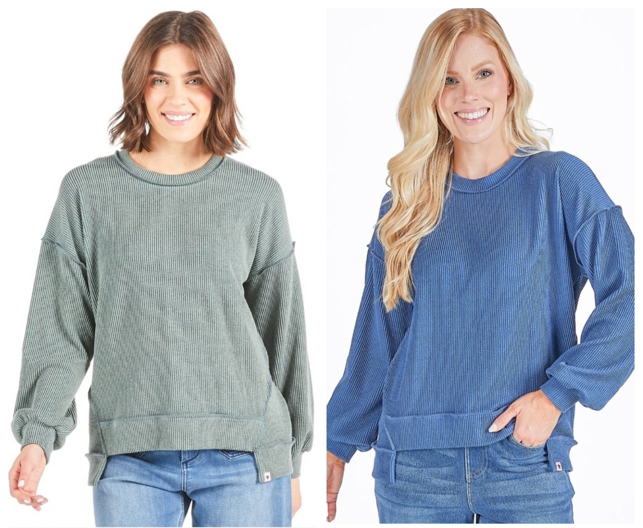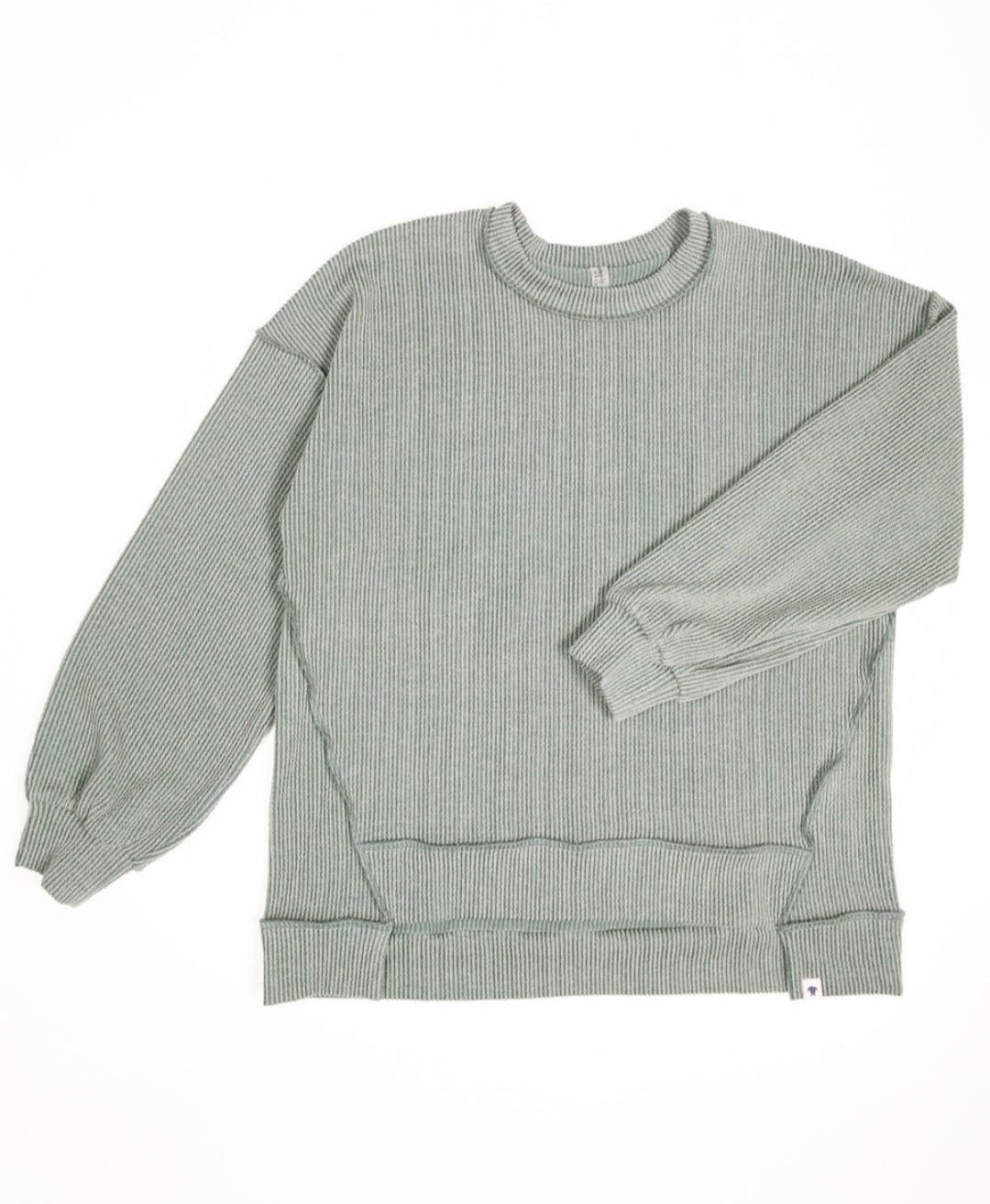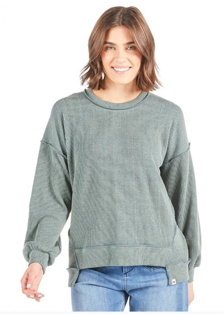 The Amber Top is an oversized shilouette with forward side seams and and dropped hem. Featuring crew neckline and balloon sleeves with cuff. Made of 20% rayon 75% polyester 5% spandex.