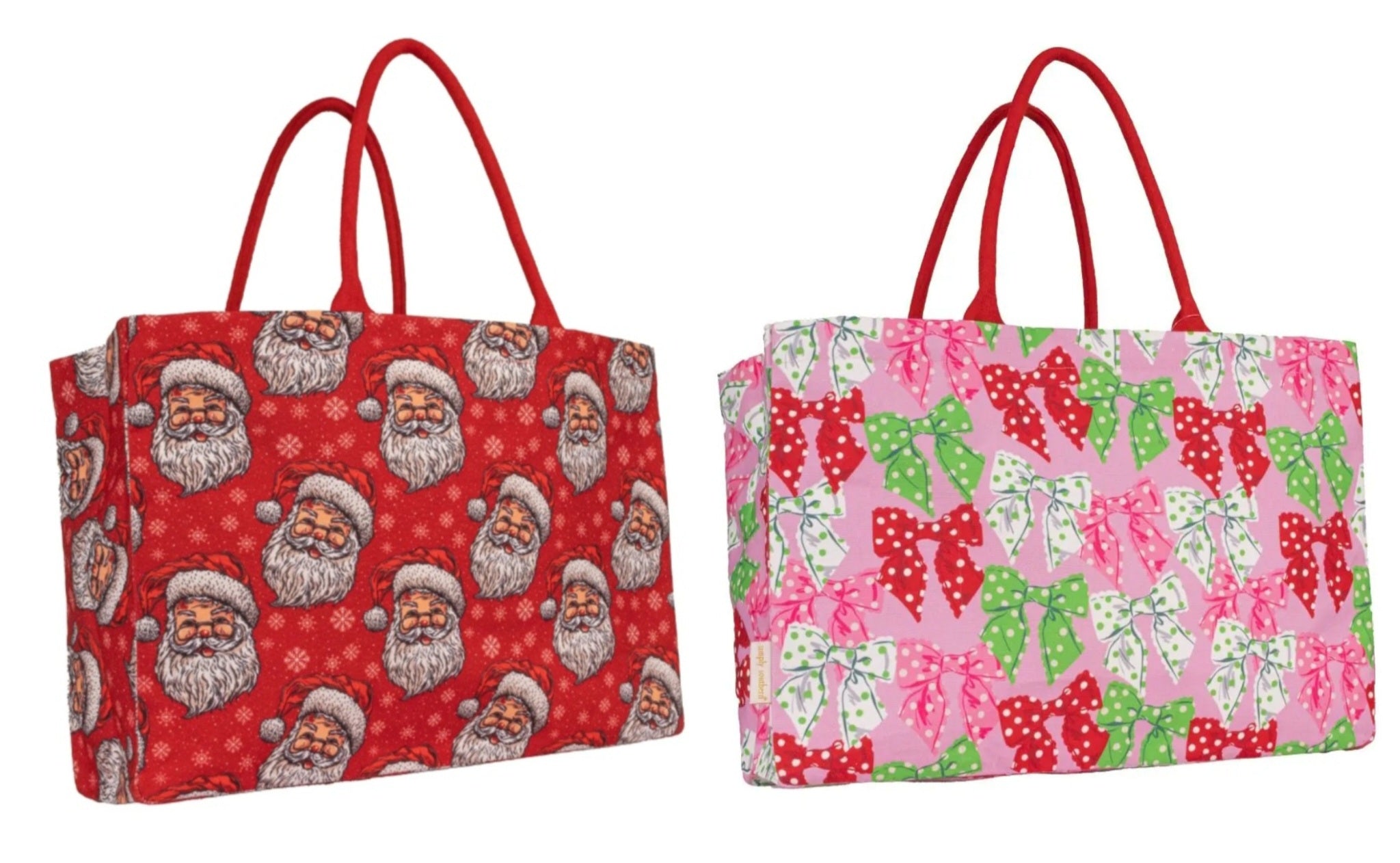 Carrying all your things has never been easier with this extra large canvas totes in assorted designs and colors. They feature contrasting color handles, wide base, and interior pocket with Simply Southern logo. Made of 100% polyester.