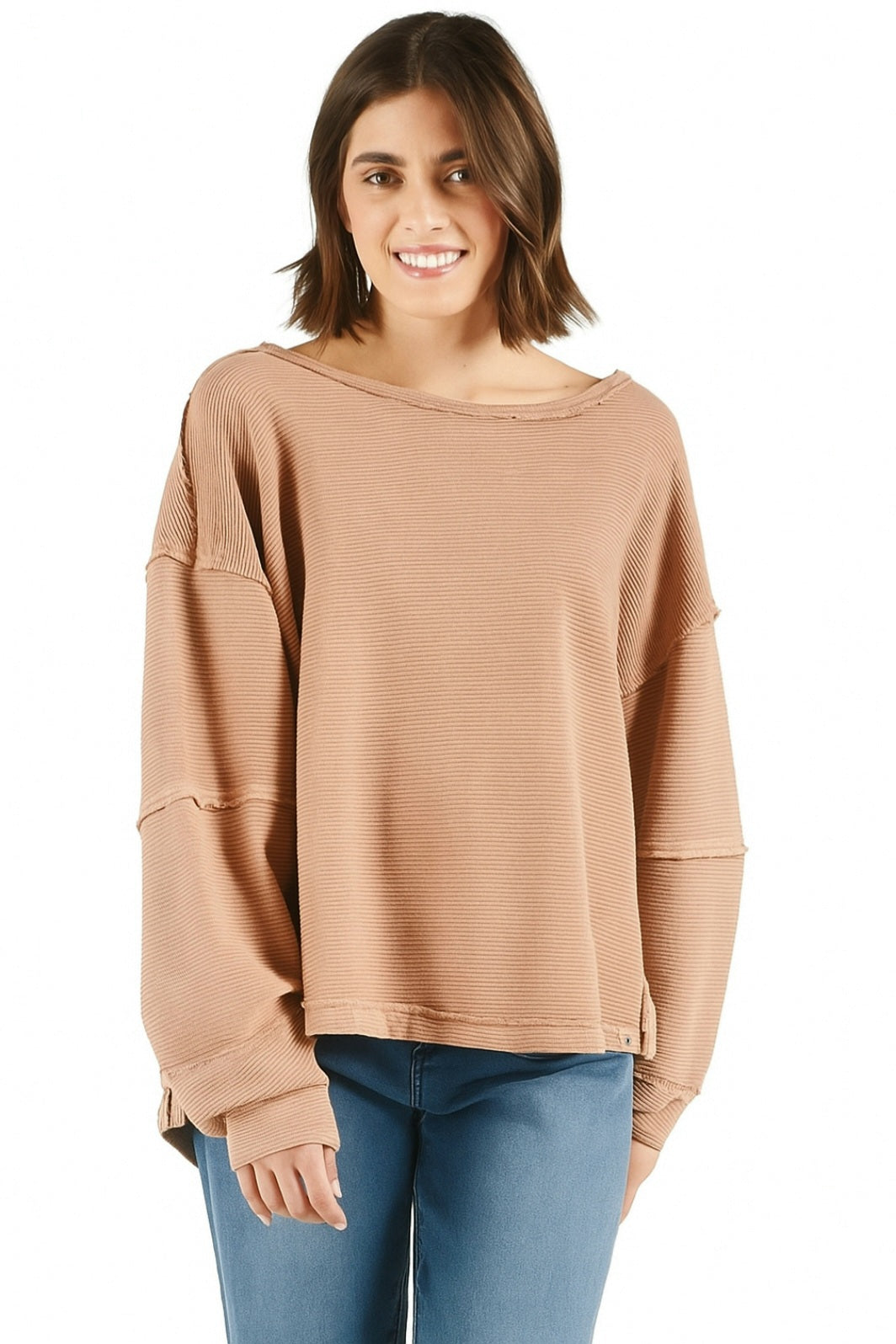 This Sabrina Pullover is the perfect throw on top. It features crew neckline, oversized fit, drop tail hem, pieced sleeves, and Simply Southern logo label at hem. Made of 100% cotton