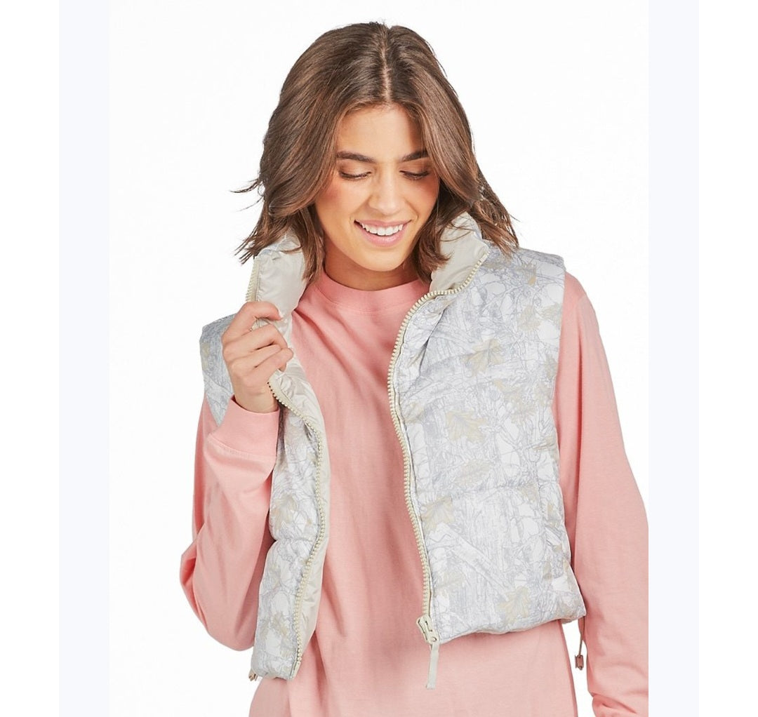 Stay warm in this adorable cropped puffer vest featuring quilted body, zip front, two front pockets, and Simply Southern logo. Made of 100% polyester