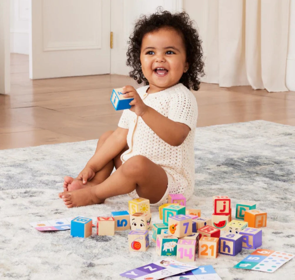EARLY LEARNING: Littles can practice speech, turn-taking, social and emotional skills, and more, with 26 embossed blocks to help kids identify letters, numbers, colors and objects, 4 activity blocks, and so much more